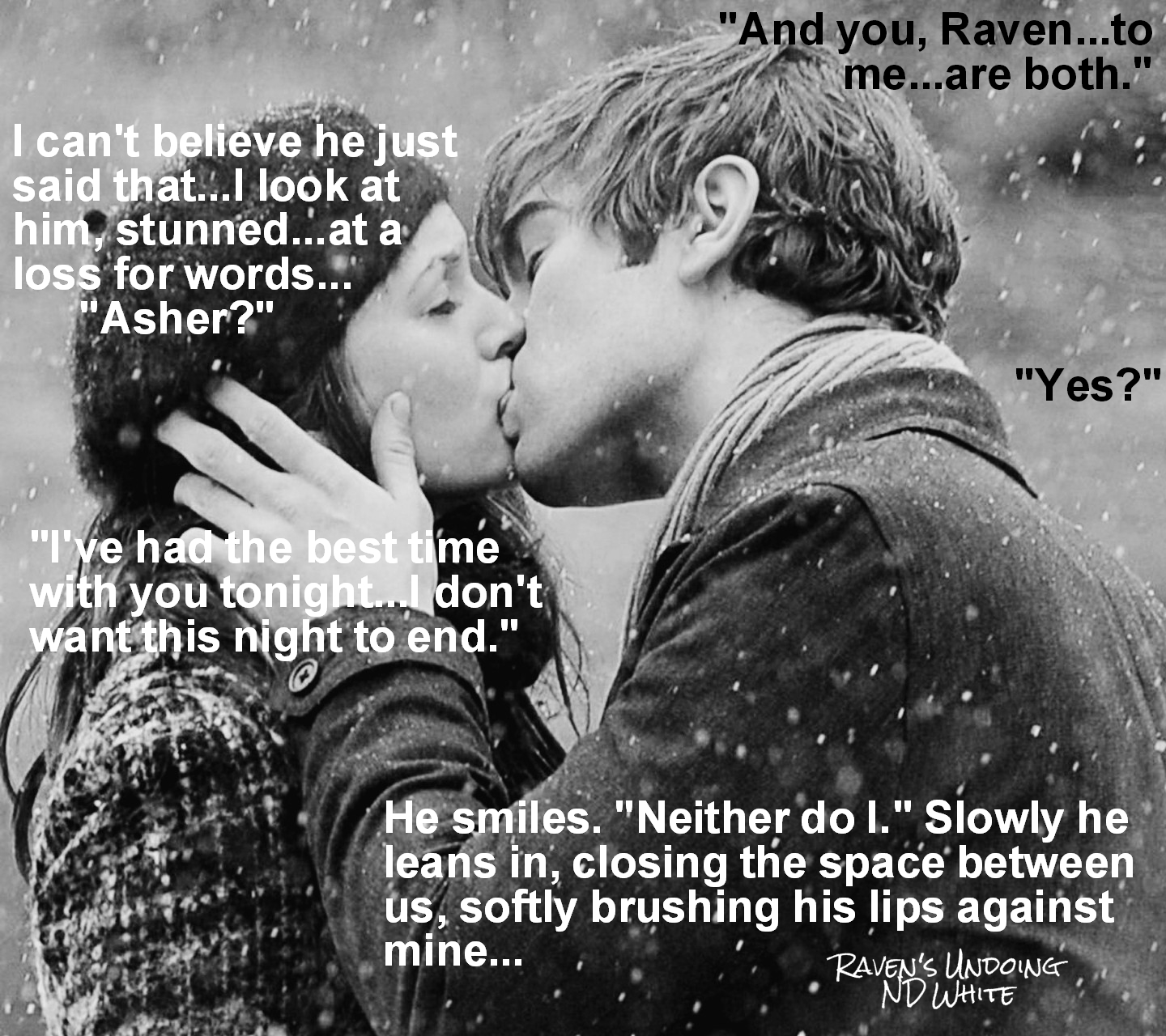 I considered posting the first few chapters here like I did with my first book, but unfortunately, if you haven’t read Raven’s Innocence, then that would give away some serious spoilers. So I’ve chosen various scenes from Raven’s Undoing, in hopes to capture your attention, without giving too much away… Hope you enjoy! *MWAH*